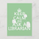 This is the classic "Keep Calm and Carry On" war poster reworded to "Keep Calm and Ask A Librarian". I've kept the crown at the top, but added silhouettes of piles of books weighing down the letters.