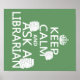 This is the classic "Keep Calm and Carry On" war poster reworded to "Keep Calm and Ask A Librarian". I've kept the crown at the top, but added silhouettes of piles of books weighing down the letters.