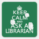 This is the classic "Keep Calm and Carry On" war poster reworded to "Keep Calm and Ask A Librarian". I've kept the crown at the top, but added silhouettes of piles of books weighing down the letters.
