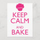 "Keep Calm And Bake". A customized version of the old British propaganda "Keep Calm And Carry On". This statement is available on several products.