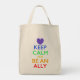 Celebrate pride with this fun design that spoofs the famous British propaganda phrase, which here reads "Keep Calm and Be An Ally" in the same poster-style all capital font. The words are in rainbow colors and the crown icon has been replaced by a purple heart. This is made for everyone who knows that love is love.