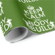 This design reads 'Keep Calm and Body Build', with the traditional crown at the top. There are three body builder figures standing on or by the words. It's a fun design which makes a great gifts for body builders. Available on posters, t-shirts, post cards and business cards, as well as many other products.