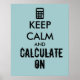 This keep calm item template has an image of a calculator instead of the keep calm crown logo. It says Keep Calm and Calculate On.