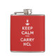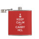 Every geologist who works with carbonates is sure to have a bottle of hydrochloric acid ready! HCl effervesces when dropped on a piece of calcite or limestone or powdered dolomite! This red hip flask features the phrase "Keep Calm and Carry HCl" in white text, with a crown-shaped splash of HCl from a squeeze bottle at the top. It's a funny geology-themed spin on the popular British World War II meme, "Keep Calm and Carry On." You can change the default red color in the full customization editor.