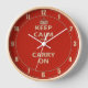 Keep Calm and Carry On. This clock will help you make it through the grueling day by using propaganda psychology. This is the red version.