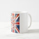 A vintage, distressed Union jack background to the wartime poster phrase 'Keep calm and Carry On'.