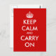 Fully customizable "Keep Calm and Carry On" postcard based on the British WWII poster! You can easily change the text by entering your own in the text fields, and pick your favorite color for the background! Get creative and express yourself! :-)