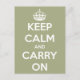 A vintage WW2 British motivational poster recreated in a soft sage green with white text and royal crown.