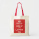 This popular WWII propaganda poster slogan says, "Keep Calm and Carry On." Here, it's given a vintage, antique look through the use of distressed text and a worn, tattered red grunge background. This is a trendy bag for anyone who loves history and is looking for a classic motivational, inspirational saying to carry around while you carry on.
