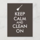 It says Keep Calm and Clean On. You can change the words and add your own text in the template to personalize, if you want.