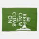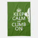 This reads Keep Calm and Climb On, in the style of the classic keep calm poster. There is a rock climber climbing to one side of the words. It makes a beautiful range of products, popular with anyone who loves to climb.