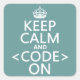 This reads Keep Calm and <Code> On, in the style of the classic keep calm poster. It's a simple but pleasing design, great for everyone who works in coding and computers, or just any geeky friends and family.