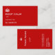 Keep Calm business card with the British crown and a dash of humor. . The white graphic image comes against red background . . Personalize both sides with your own personal or business details . By Alma Wad .It comes 100 per pack .