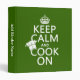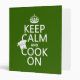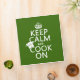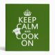 This reads Keep Calm and Cook On, in the style of the classic keep calm poster. The C of Cook is wearing a chef's hat. It makes a fun range of gifts, perfect for anyone who loves to cook or bake.