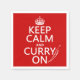 This reads Keep Calm and Curry On, in the style of the classic keep calm poster. There is a silhouette of a chilli beside the words. It's a beautiful and striking design, which makes wonderful gifts for anyone who loves curry, whether to eat or cook. Great for chefs, and restaurants, as well as amateur cooks.