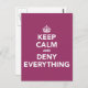Keep Calm and Deny Everything. A sound strategy - certainly works for me! Based on the Keep Calm and Carry on design