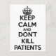 KEEP CALM AND DON'T KILL PATIENTS POSTCARD