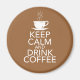 “Keep Calm and Drink Coffee” is our unique, fun design based on the parody of the famous “Keep Calm and Carry On” British slogan from the 1940's.