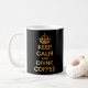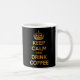 Luxury mug in black with in faux gold the text: 'Keep calm and drink coffee' and the crown.