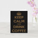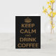 Of the popular "keep calm" theme, this card boldly proclaims to keep calm and drink coffee (designed in coffee colors!)