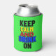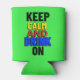 Introducing the "Keep Calm And Drink On" can cooler – the ultimate accessory for relaxation and enjoyment. This vibrant green cooler is designed with the classic phrase "Keep Calm And Drink On," offering a playful yet reassuring message perfect for any occasion. Whether you're hosting a backyard barbecue, lounging at the beach, or unwinding after a long day, this cooler ensures your drink stays cool and your vibes stay chill. Made with high-quality materials, the "Keep Calm And Drink On" cooler combines durability with a touch of humor, making it an ideal gift for friends, family, or even yourself. Its eye-catching design and practical functionality make it a must-have for anyone who appreciates a good drink and a good laugh. Elevate your beverage experience and keep the good times rolling with this fun and stylish can cooler.