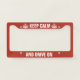 Keep Calm and Drive On License Plate Frame – An awesome license plate frame taking its inspiration from the famous British meme: Keep Calm and Carry On. Keep Calm and Carry On was a motivational poster produced by the British government in 1939 in preparation for World War II. The poster was intended to raise the morale of the British public. You can change the bottom phrase to anything you wish!