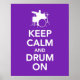 This print is a take off of the popular World War II Keep Calm posters. It features a silhouette of a drummer on a purple background.