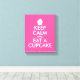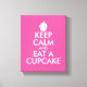 Keep calm and eat a cupcake wrapped canvas art print. Cute decoration for cup cake shop, bakery, home kitchen etc. Neon pink Keepcalm canvas print | Customizable text. Create your own funny Keep calm and carry on parody print or poster. Personalize this template with your own funny quote or saying and custom background color.