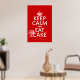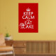 This reads Keep Calm and Eat Cake, in the style of the classic keep calm poster. There is a beautiful cake on a stand by the words. It's a lovely design, and fabulous advice in times of crisis. Great gifts for anyone who needs more cake in their life.
