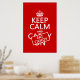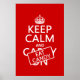 This reads Keep Calm and Eat Candy, in the style of the classic keep calm poster. The final words have been added as though on a sticker or a stamp over the original. A fun and humorous design, great for anyone who loves candy.