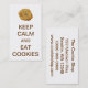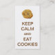 This business card features a photograph of a chocolate chip cookie, with the text, "Keep Calm and Eat Cookies". The text on the back features your business information, and can be customized to fit your needs.