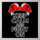 Boxing Humor with the Internet meme "keep Calm". Red boxing gloves with the slogan "Keep Calm and Fight On"