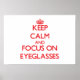 Use the search tool at my store to find other EYEGLASSES merchandise. Keep Calm and focus on EYEGLASSES products available on tshirts,sweatshirts,kids shirts, infant onsies, stickers, magnets, and much more EYEGLASSES clothing fully customizable to your specifications. If you like what you see, please link to my store (www.zazzle.com/shirtsforall) or email a friend.