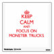 Use the search tool at my store to find other Monster Trucks merchandise. Keep Calm and focus on Monster Trucks products available on tshirts,sweatshirts,kids shirts, infant onsies, stickers, magnets, and much more Monster Trucks clothing fully customizable to your specifications. If you like what you see, please link to my store (www.zazzle.com/shirtsforall) or email a friend..