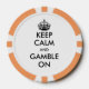 Keep calm and gamble on custom casino poker chips. Funny token markers with custom amount number. Fun party favor design for guests. Availble in orange and other colors.