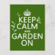 This reads Keep Calm and Garden On, in the style of the classic keep calm poster. Leaves are growing from the letters. It's a beautiful simple design which makes a beautiful range of products for the gardener in your life.