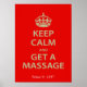 Keep Calm and Get a Massage, and Keep Calm and Get Reiki. In the tradition red and tan combination, or with green text or crisp white so you can choose any background you like. Perfect poster for your massage studio, reiki healing center, or spa salon. Add your name or company to personalize. Based on the classic WWII Keep Calm and Carry On posters in England.
