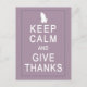 Keep calm and give thanks. A spiritual take on the old Keep Calm and Carry On poster from the 1930s. We changed the color to a soft muted grey violet, added a silhouette of praying hands, and updated the text to read KEEP CALM AND GIVE THANKS. Available on tshirts in tons of styles, sizes and colors, as well as gifts such as cell phone and iPad covers, mugs, caps, and keychains.