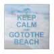 Keep Calm And Go To The Beach design with palm trees. Photo beach scene background.