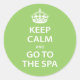 Our take on the classic WWII poster reminding the English to keep calm and carry on during the Blitz, we simply say, "Keep calm and go to the spa"! Relax, rejuvenate, and have a laugh while you get a massage or salon treatment! Makes a great gift for your salon customers or your massage therapist. In crisp white so you can place it on any background color. Play around with all the colors!