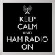 Keep Calm And Ham Radio On. Funny Amateur Ham Radio accessory would be a great gift for a hobbyist ham radio operator to wear in their ham shack. Do you love to operate shortwave & ham radios as a hobby? Do you have an antenna on your roof or backyard? Do you know all the best frequencies? Then this design is for you! Has a graphic of a broadcasting radio tower.