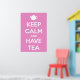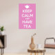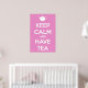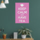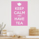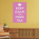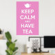 A sweet twist on a vintage WW2 British motivational poster in soft cottage pink with crisp white text and teapot.