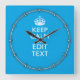 Keep Calm And Have Your Text on Sky Blue Accent Square Wall Clock