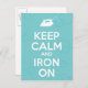 © Pela Studio / Wild Apple. The image features a blue box with white text that reads Keep Calm and Iron On. An image of an iron can be seen on the image.