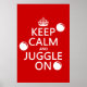 This reads Keep Calm and Juggle On, in the style of the classic keep calm poster. Three juggling balls are beside the letters. It's a beautiful design, great for anyone who loves to juggle, whether posters and t-shirts for a juggling get together, or gifts and giveaways for a juggling school. There's something for every juggler in your life.