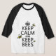 This reads Keep Calm and Keep Bees. Cartoon bees buzz alongside the words. It's a beautiful design, really popular with anyone interested in beekeeping and bee conservation.