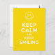 "Keep Calm And Keep Smiling" is a variation to the "Keep Calm And Carry On" poster used in World War 2. If interested, here's the history behind the original: youtu.be/s16YLhKzfNI