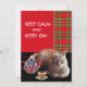"KEEP CALM AND KITTY ON" ,RED TARTAN,CAT TEA PARTY INVITATION