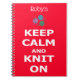 A great little notebook, perfect for your knitting notes and ideas. It has the words "Keep Calm and Knit On" on the front, in white on a red background, and you can also add your name. It is decorated with a drawing of three balls of yarn and knitting needles.