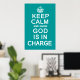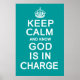 Cool, cute, trendy, artistic, sassy and colorful! This colourful, fresh stylish trendy inspirational Keep Calm and Know God Is In Charge Christian message poster is sure to feed your soul and keep your spirit uplifted. Use the customize it button to change the background color. If you have questions or want this design on another product, please contact: cheryl@cheryldanielsart.com.
